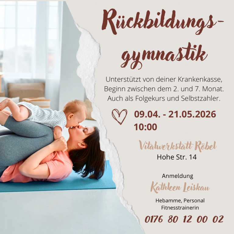 Die Rückbildungsgymnastik ist ein wichtiger Bestandteil der Zeit nach der Geburt – sie unterstützt dich dabei, deinen Körper nach Schwangerschaft und Geburt wieder zu kräftigen und dein inneres Gleichgewicht zu stärken.